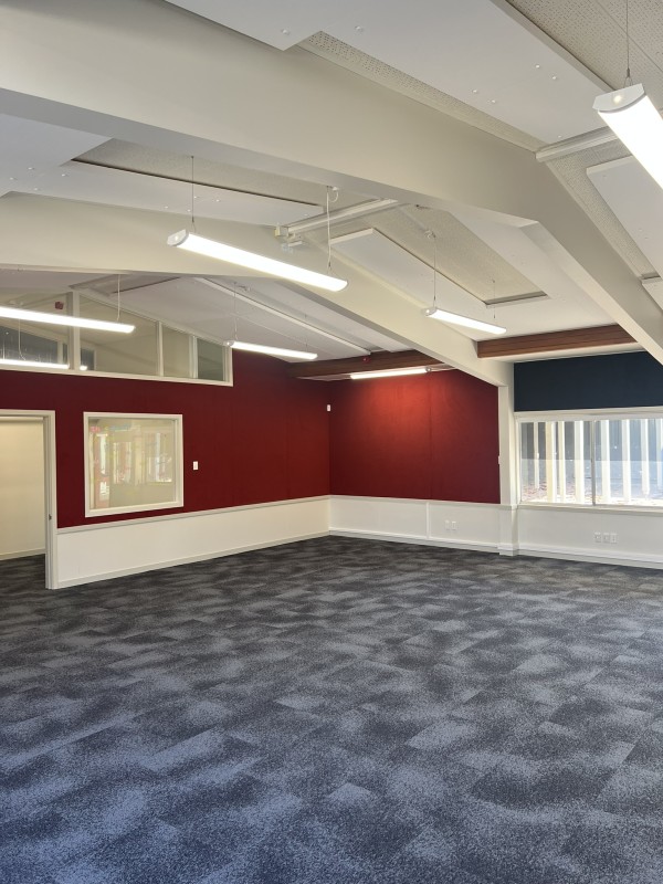 The refurbishment encompassed a range of improvements. Installing acoustic ceiling treatments to enhance sound quality, laying new carpet and Lino flooring, and replacing existing socket outlets with RCD-protected alternatives to improve electrical safety. Lighting upgrades were also carried out, along with a new kitchen unit and water supply. Old wall coverings were removed and replaced with new Autex, helping to create a more engaging learning environment. To support digital learning, wireless access points were installed as part of the infrastructure improvements.