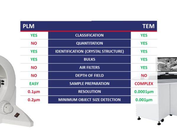 Comparison of polarised light microscopy (NZ testing) vs TEM. Image below.